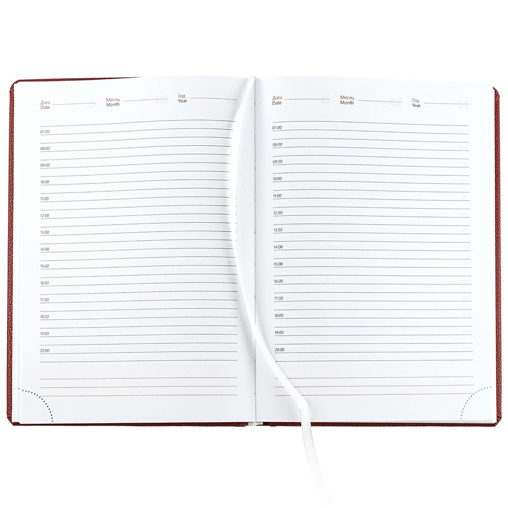 Ежедневник в твердой обложке c поролоном, выполнен из материала La Fite, красный РР, дополнен ляссе белого цвета.
