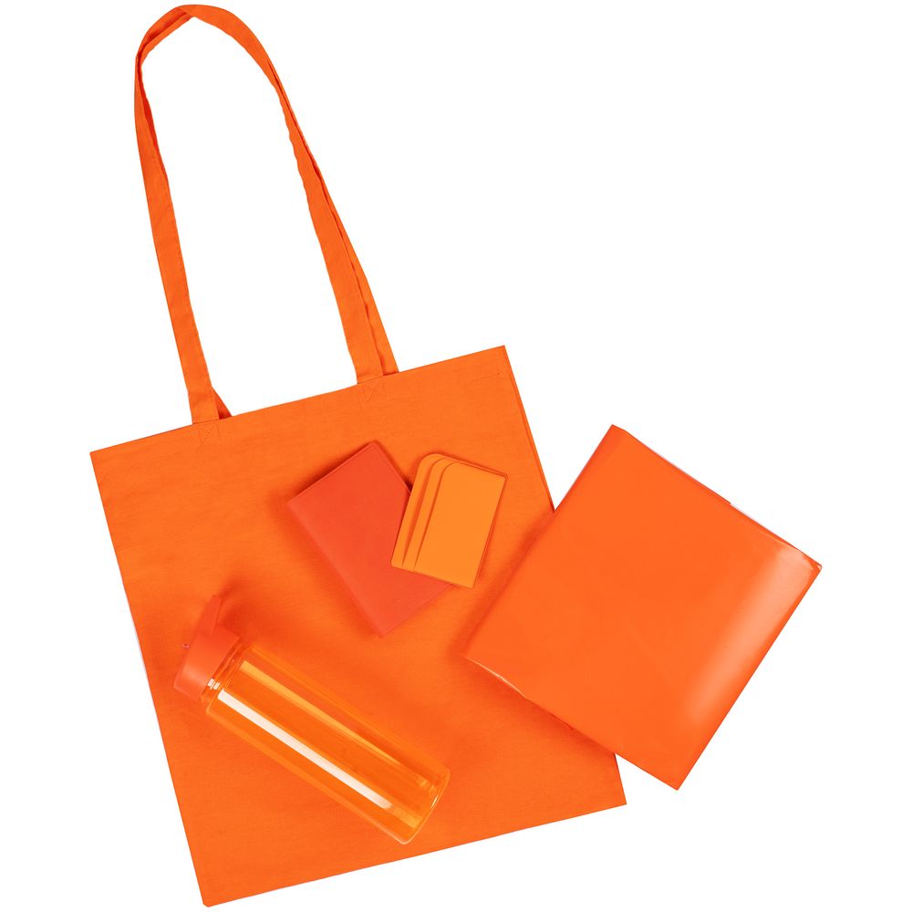 Большая спортивная бутылка для поддержания водного баланса, стильные личные аксессуары на каждый день и конечно, необходимый атрибут выездных мероприятий — плотный пластиковый дождевик-плащ с капюшоном. Все это собрано в идеальной упаковке — базовом тонком шопере, который может пригодиться на мастер-классе по рисованию на ткани.