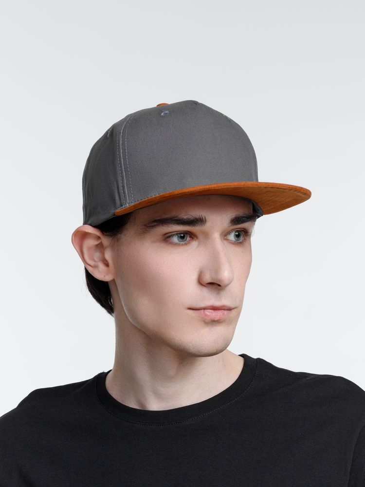 Плотный контрастный прямой козырек из мягкой, приятной на ощупь ткани с велюровым эффектом