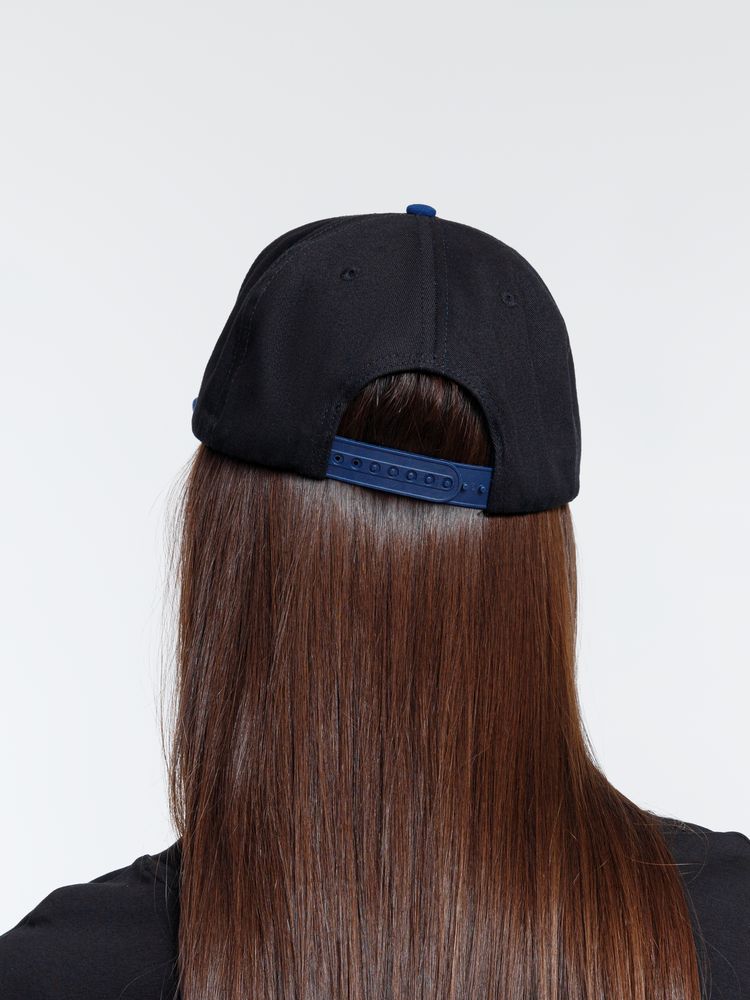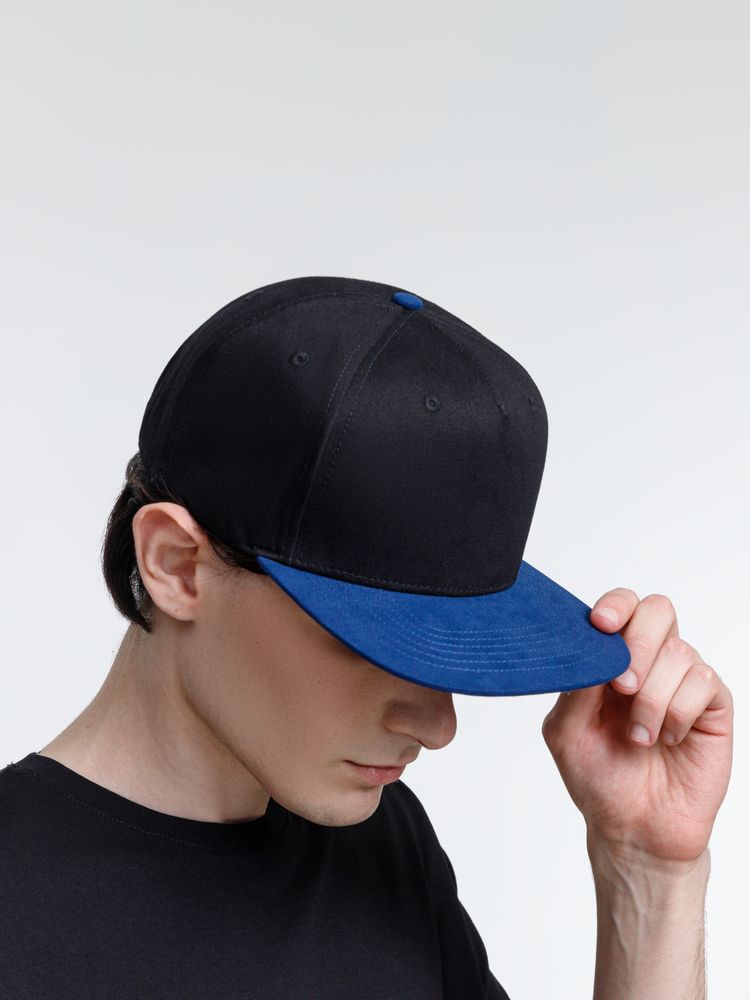 Плотный контрастный прямой козырек из мягкой, приятной на ощупь ткани с велюровым эффектом
