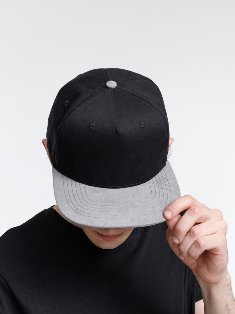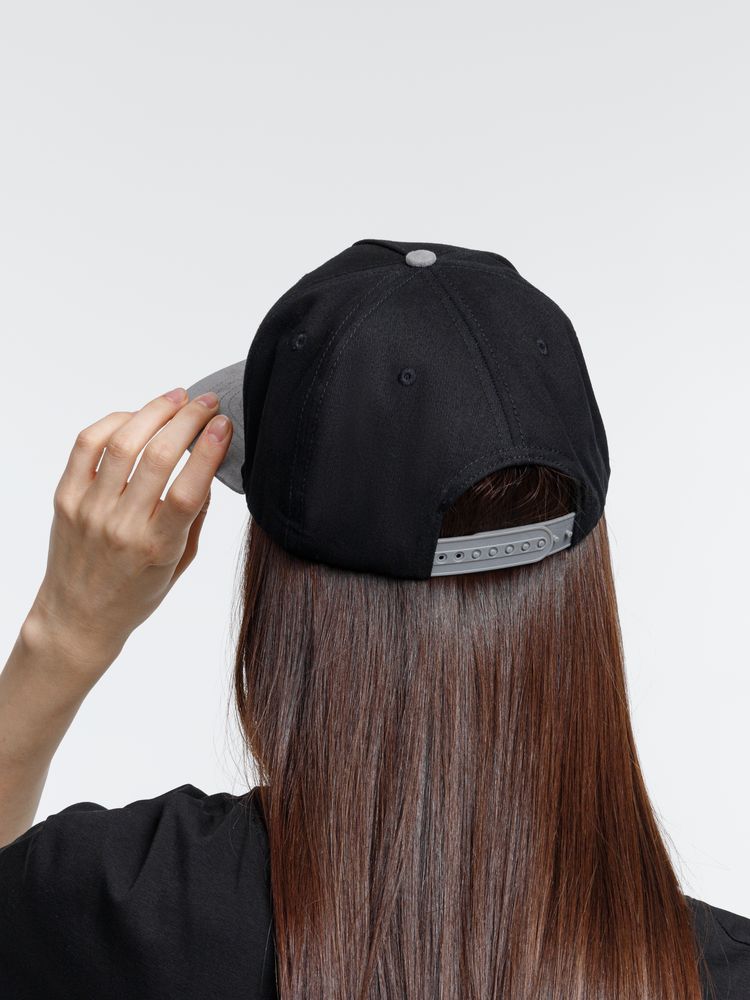 Плотный контрастный прямой козырек из мягкой, приятной на ощупь ткани с велюровым эффектом