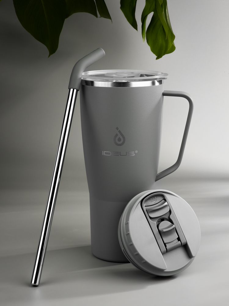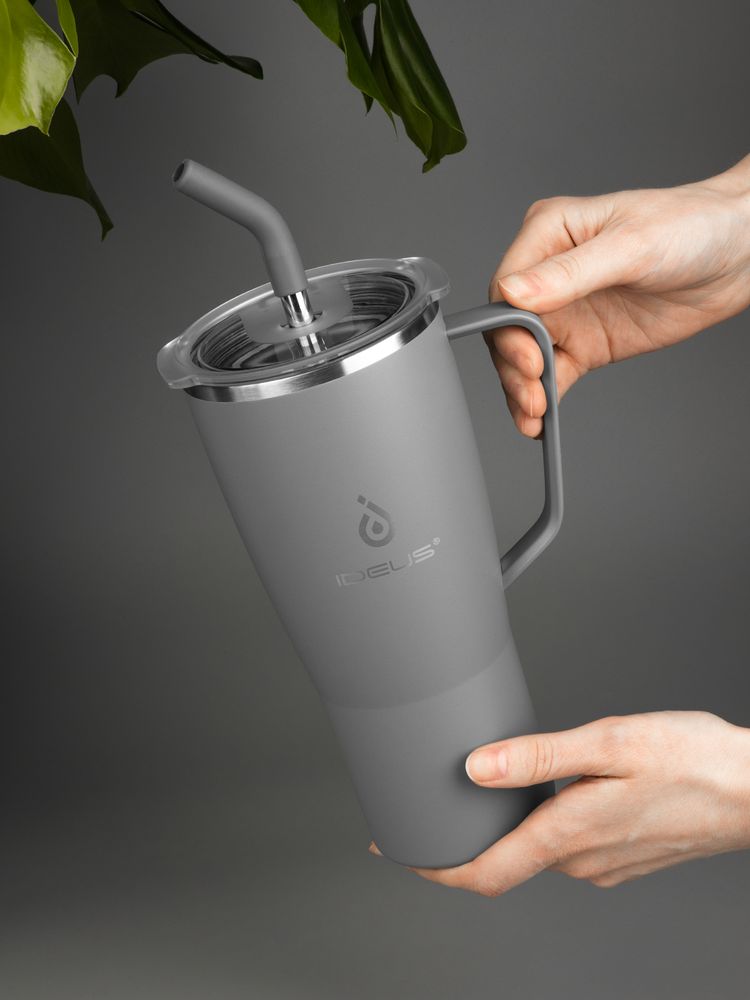 • Материал: корпус - нержавеющая сталь, 18/8; крышка - пластик; трубочка - нержавеющая сталь, пищевой силикон