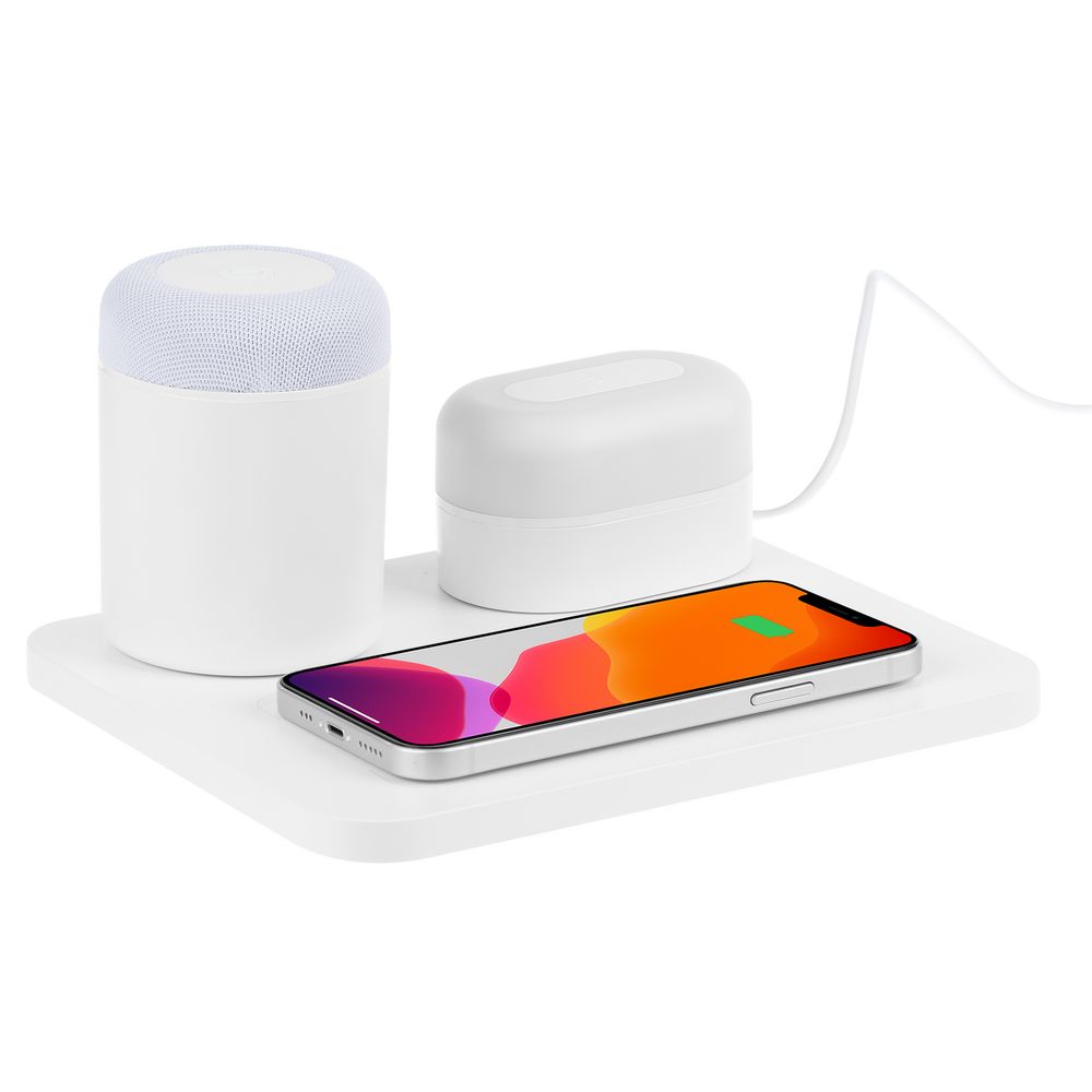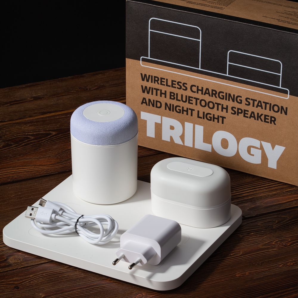 Trilogy — многофункциональное устройство, три составляющих которого эффектно дополняют друг друга: это bluetooth-колонка, переносная лампа и площадка для беспроводной зарядки гаджетов.