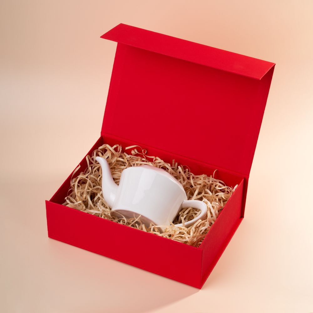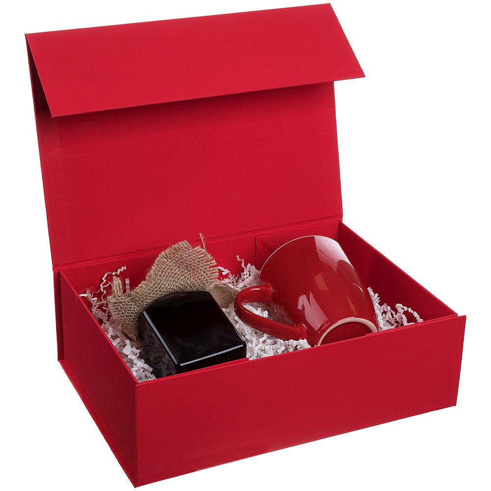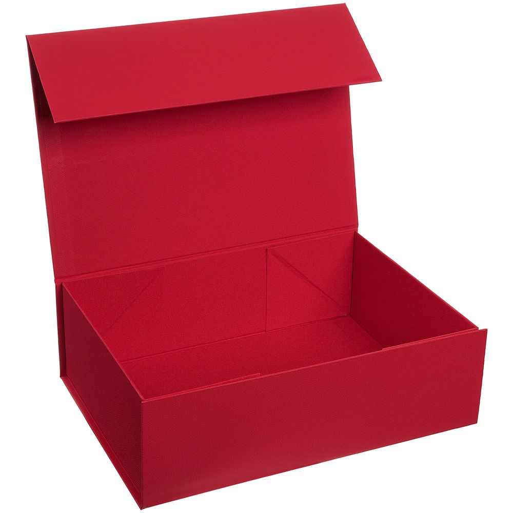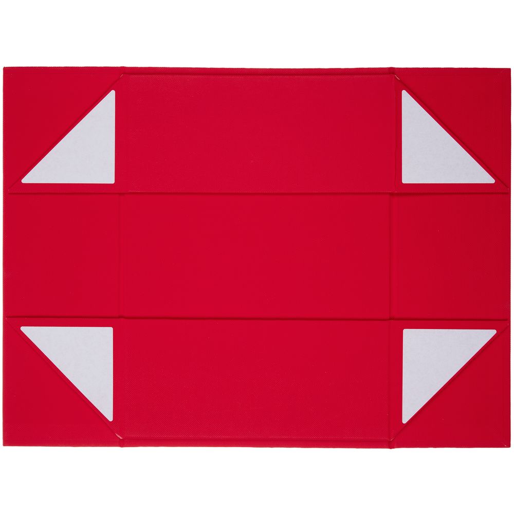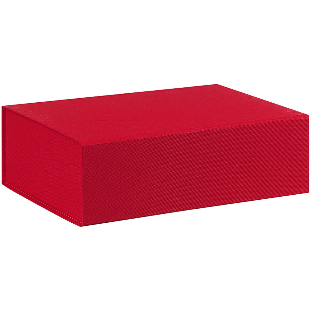 Коробка из переплетного картона, кашированного тисненой тонированной в массе бумагой, с крышкой на магните. Толщина картона 2 мм. Поставляется в плоском виде. Сборка осуществляется на скотч.