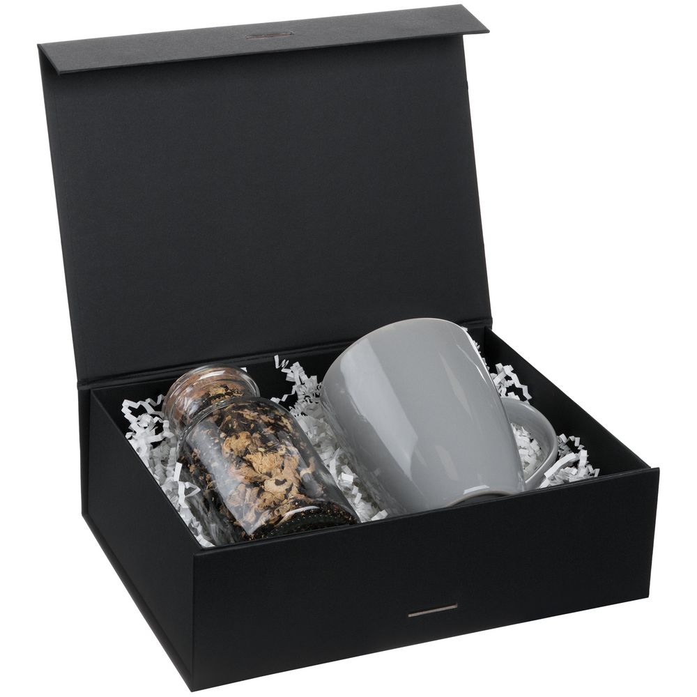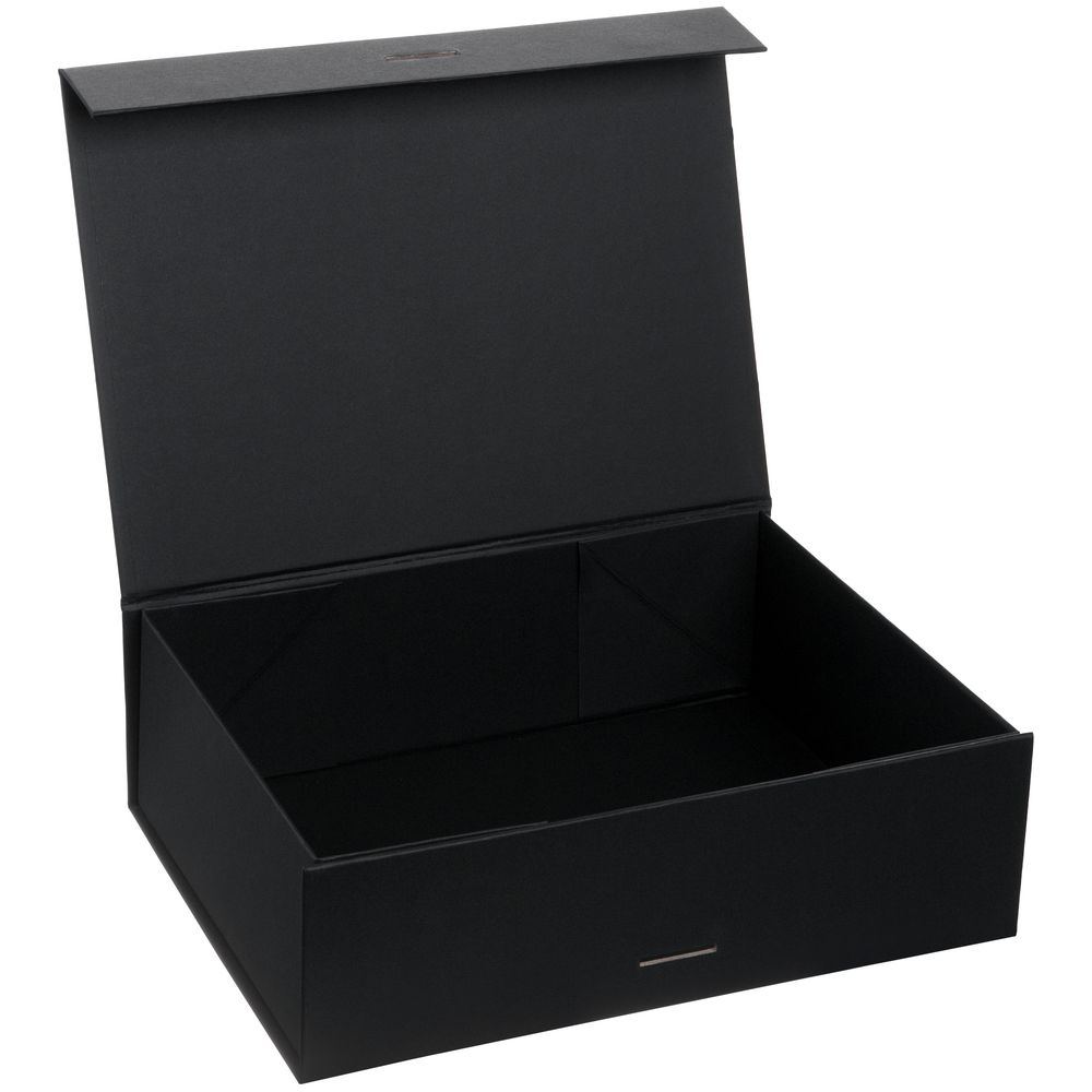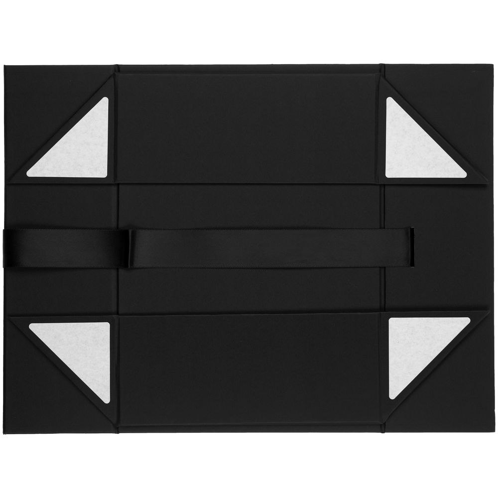 Коробка из переплетного картона, кашированного тонированной в массе крафтовой бумагой. Крышка на двух магнитах дополнительно фиксируется репсовой лентой.Толщина картона 2 мм.