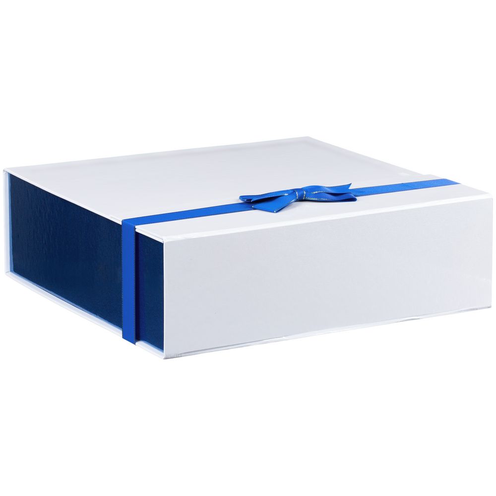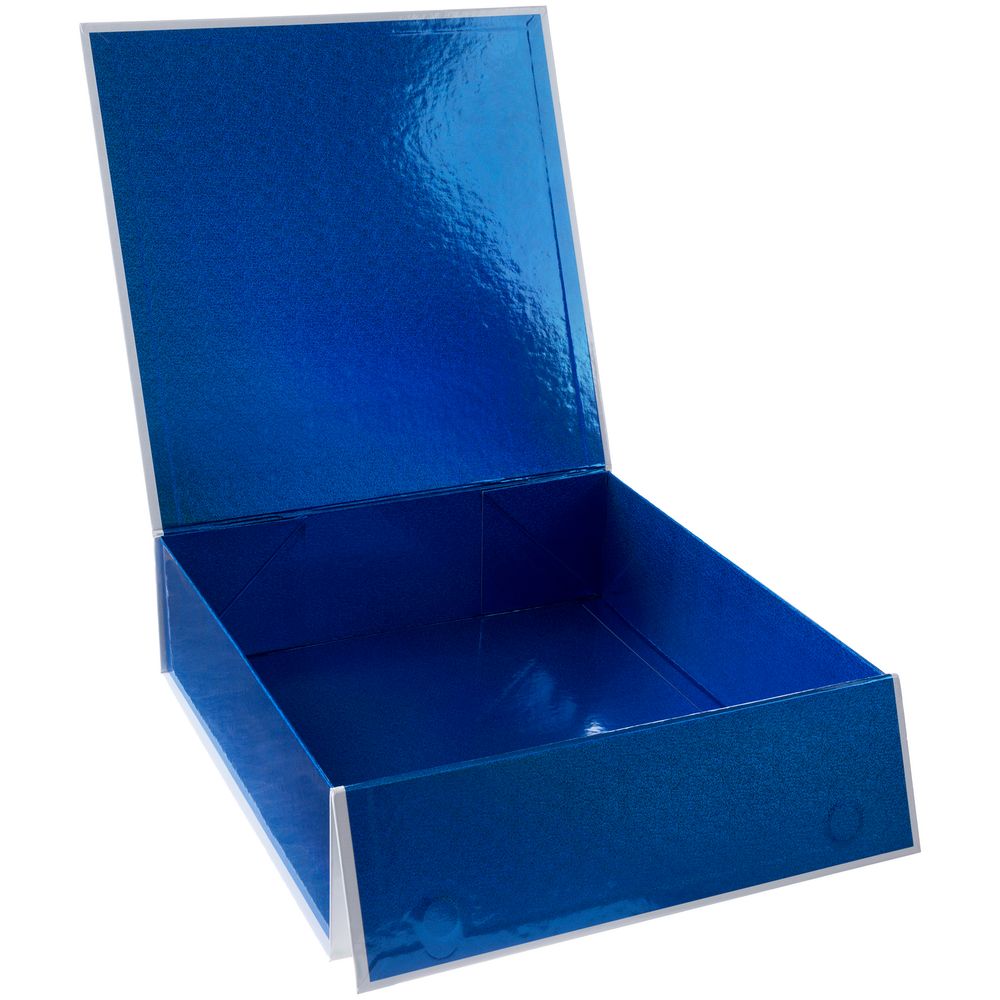 Коробка из переплетного картона, кашированного мелованной бумагой с глянцевой ламинацией. Крышка на двух магнитах дополнительно фиксируется лентой.Толщина картона 2 мм. Поставляется в плоском виде. Сборка осуществляется на магниты.