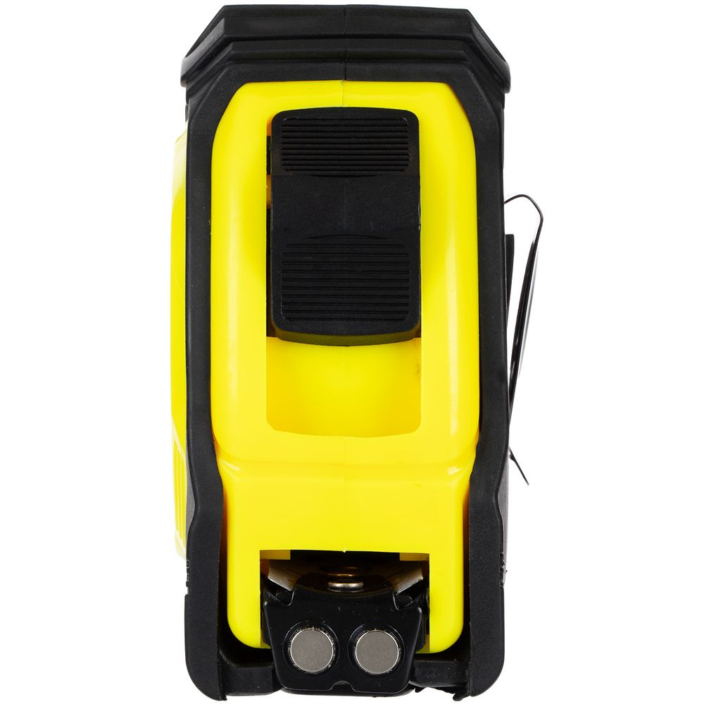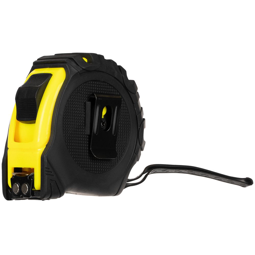 Длина измерительной ленты 5 метров позволяет работать на больших расстояниях. Лента оснащена магнитным наконечником для надежного сцепления с металлическими поверхностями. Корпус рулетки выполнен из прочного пластика с накладкой из ПВХ, которая предотвращает скольжение инструмента в руке.