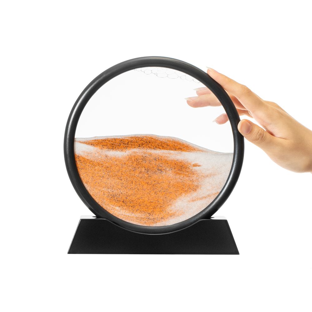 Песочный антистресс — это живая картина, в которой струящиеся в воде цветные песчинки создают неповторимые пейзажи. Наблюдение за невероятными образами позволит расслабиться и отвлечься от дел, успокоив глаза и мысли.