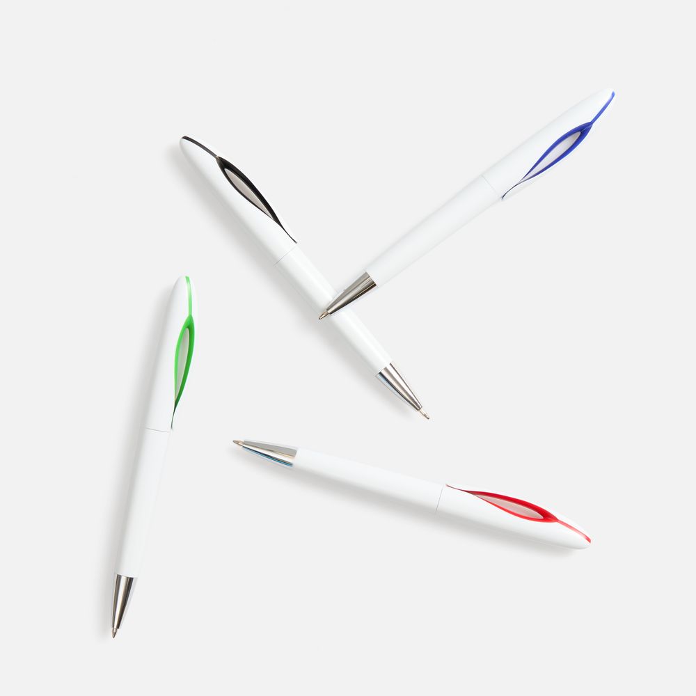 Шариковая ручка приятных округлых форм с белым глянцевым корпусом и цветовым акцентом. Механизм ручки: поворотный. Корпус ручки разбирается, стержень легко заменить. Стержень с синими чернилами.