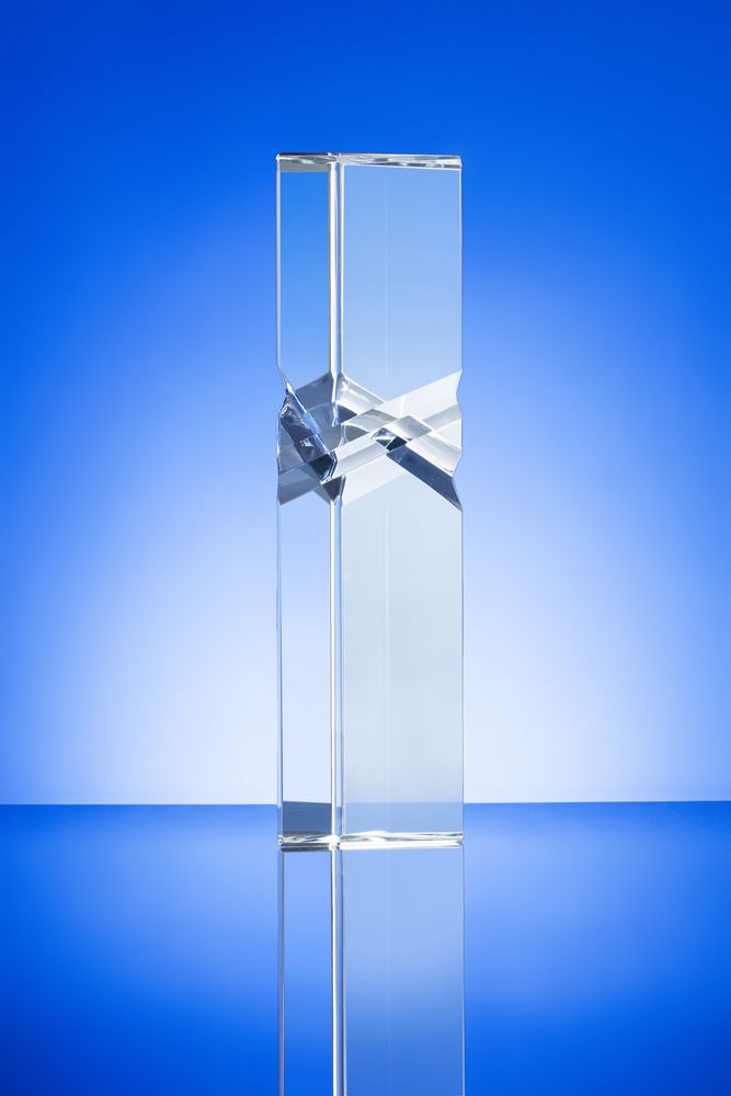 Стела изготовлена из стекла К9, в основе которого лежит оптическое боросиликатное стекло. Эту марку стекла отличает низкий процент посторонних включений, высокий показатель преломления и высокая прозрачность — идеальные качества для изготовления наград премиального уровня.Поставляется в подарочной коробке.