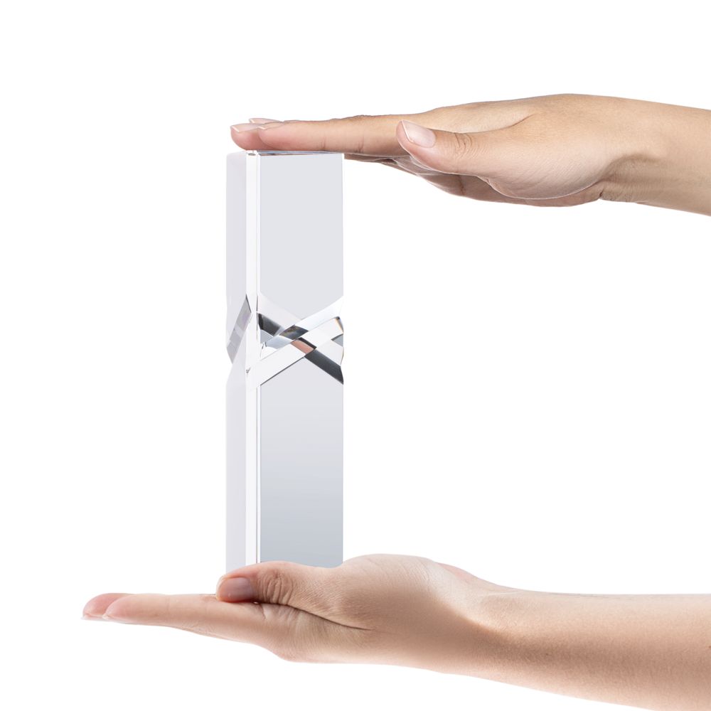 Эффектная стела-башня Prismart — тот случай, когда гордиться хочется не только достижениями, но и самой наградой! Благодаря необычному исполнению она создает своеобразную оптическую иллюзию: треугольные вырезы посередине будто делят саму стелу пополам и завораживающе отражаются в гранях.