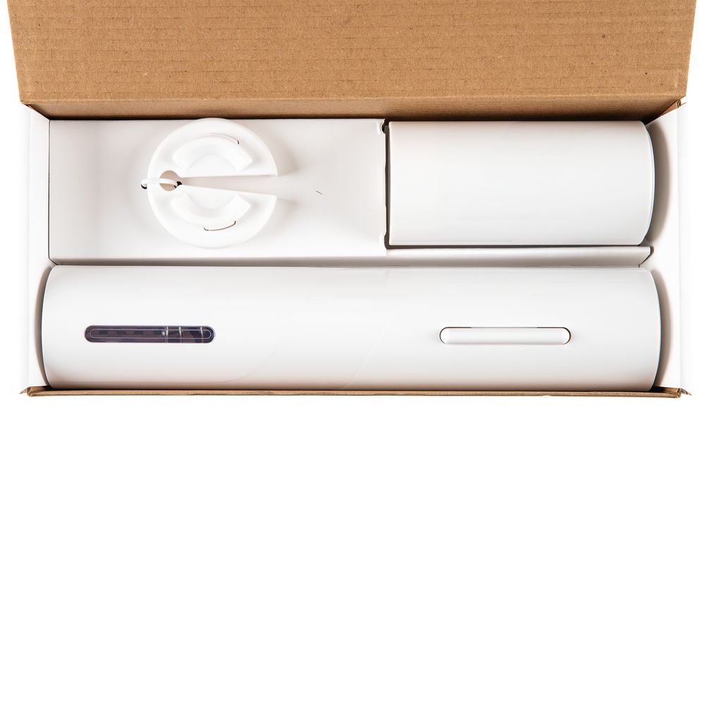 Чтобы открыть бутылку, просто поместите электрический штопор на горлышко винной бутылки, нажмите нижнюю кнопку — лезвие вкрутится в пробку, нажмите верхнюю — бутылка будет открыта. В нижней части корпуса расположен нож для фольги.