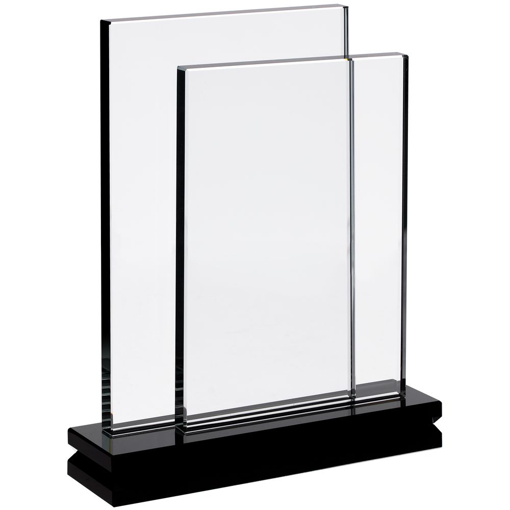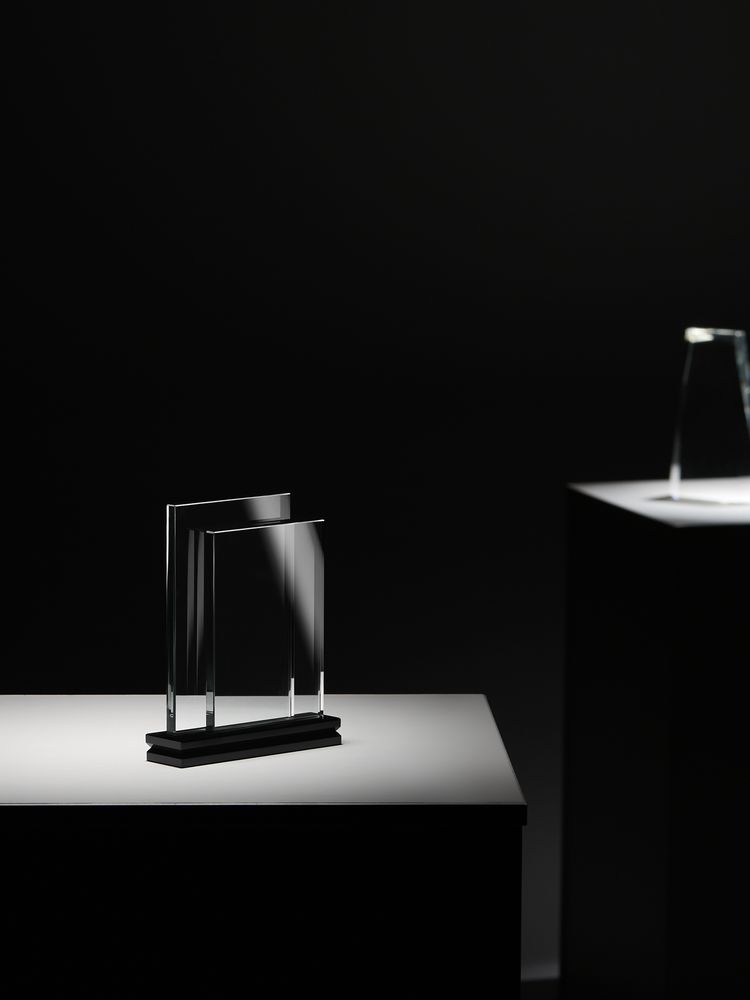 Стела Twinstand воплощает собой чистый минимализм, помноженный надвое, — для усиления эффекта и создания визуального объема и основательности. Легкая прозрачная вставка из двух листов боросиликатного стекла — идеальный баланс устойчивости и легкости, который позволит отметить вдвое больше заслуг или создать оригинальный запоминающийся дизайн с помощью креативного нанесения.