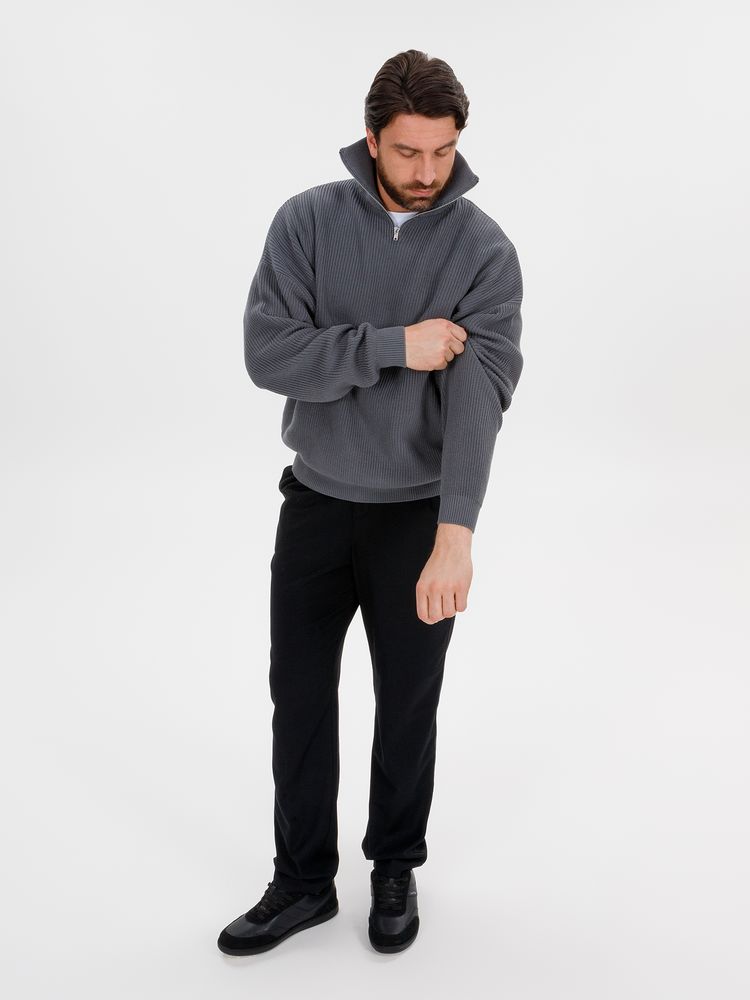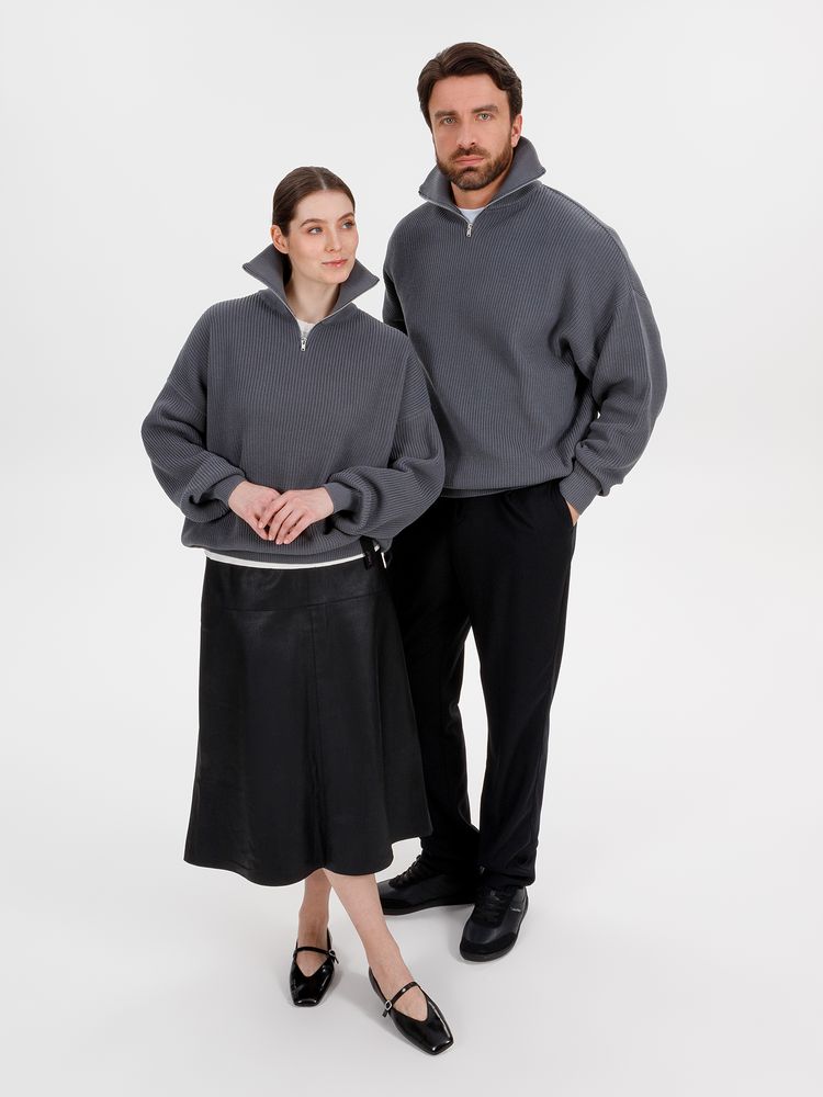 Siluetti Birne — плотный джемпер фактурной вязки со спущенной линией плеча позволит добавить в силуэт мягких линий и ненавязчивого объема, а также создать современный модный образ в лаконичном актуальном стиле, отдав при этом дань беспроигрышной классике. Дополнительным акцентом служит высокая горловина на молнии, а широкая резинка на рукавах и по нижнему краю изделия гарантирует максимальный комфорт.