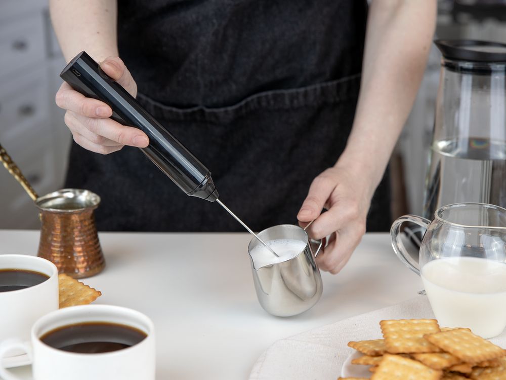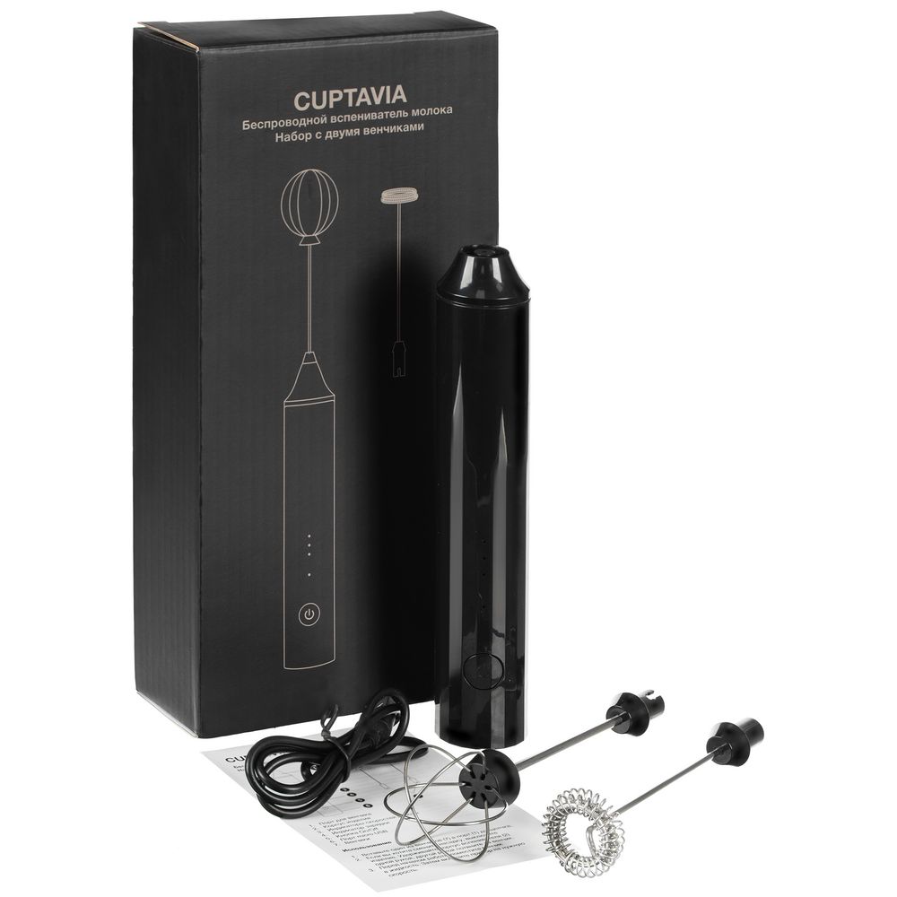 Беспроводной вспениватель молока Cuptavia сочетает в себе мощность, удобство и стильный дизайн. Два сменных венчика и три скорости работы делают этот прибор максимально универсальным и позволяют не только идеально взбить молоко для кофе плоским венчиком, но и с помощью круглой насадки приготовить простой завтрак, например, омлет или блинчики.