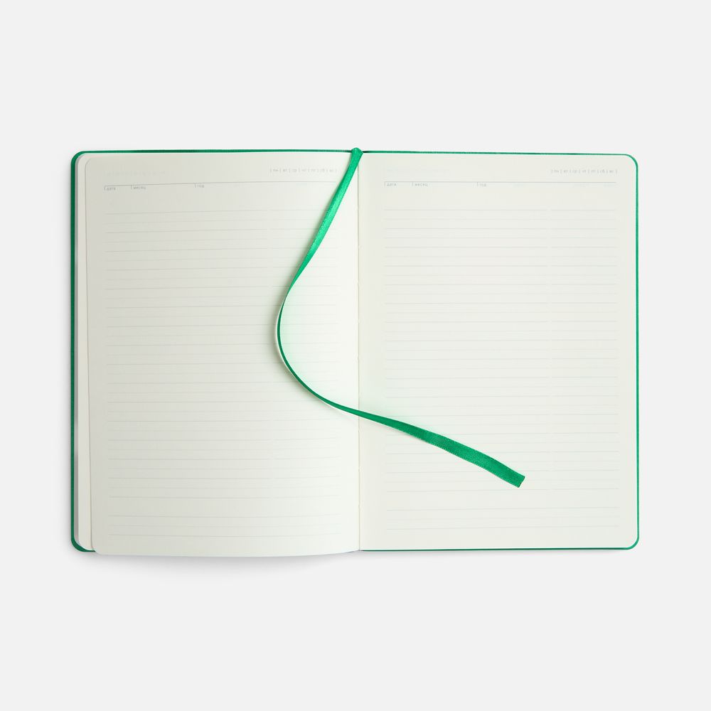 Ежедневник с гибкой обложкой выполнен из материала Vienna, дополнен атласным ляссе и фактурным тиснением обложки.