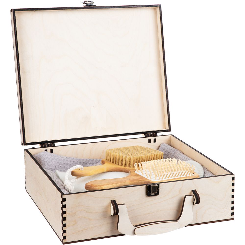 Кейс Wunderding, выполненный из березовой фанеры, станет надежной, практичной и экологичной упаковкой для самых разных подарков. Он отличается вместительностью и функциональностью. Крышка закреплена на прочных металлических петлях и фиксируется небольшим замком.Деревянный кейс с ручкой.