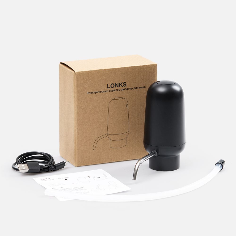 Электрический аэратор-дозатор Lonks — небольшой, но полезный прибор, который поможет легко и удобно налить вино в бокал и насытить напиток кислородом. Компактный и простой в использовании, он превращает каждую подачу вина в изысканный ритуал, делая каждый глоток любимого напитка поистине незабываемым.