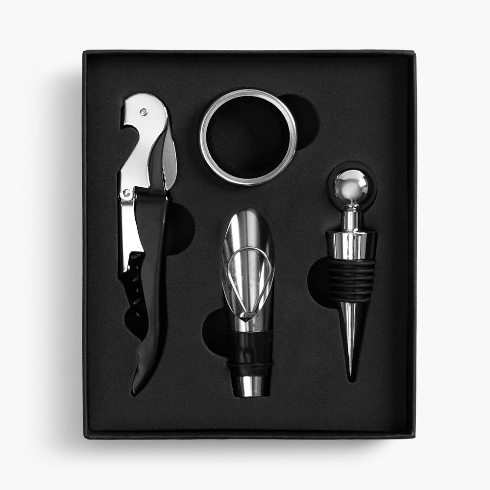 Функциональный и простой в использовании набор винных аксессуаров в лаконичной коробке.В набор входят: