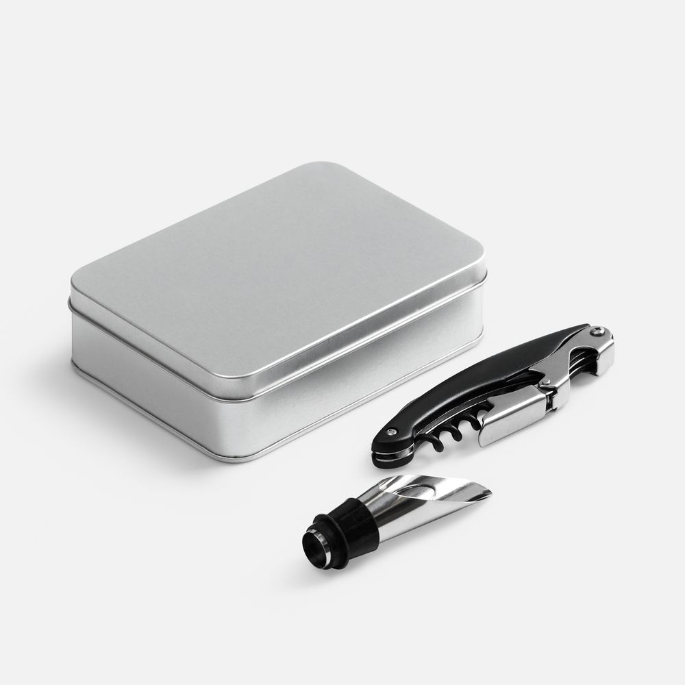 Набор упакован в жестяную коробку с ложементом.