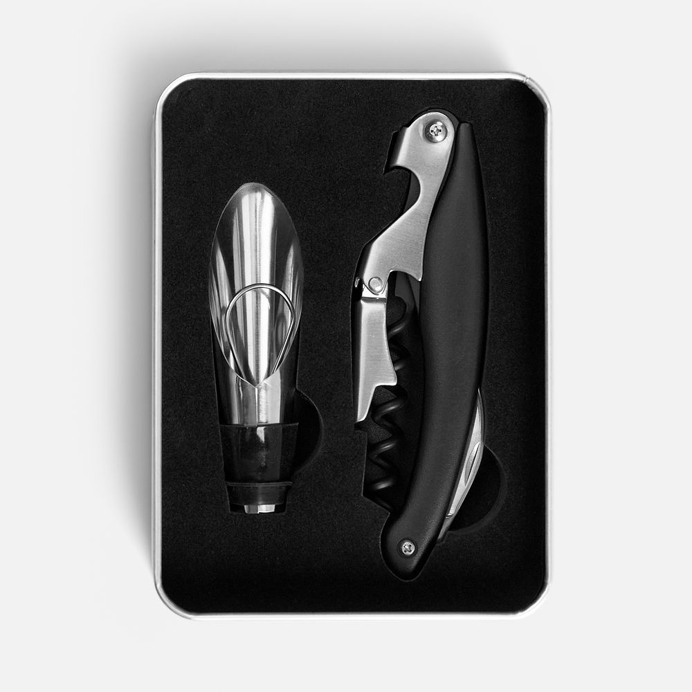 Размеры: нож: 11х3х1 см, аэратор: 2,2х2х7,5 см; коробка:12,5х9,1х3,5 см