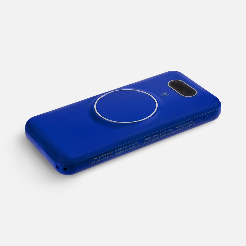 Интересная особенность аккумуляторов Omni — совершенно автономная конструкция: встроенные кабели позволяют заряжать как самые разные электронные устройства, так и сам аккумулятор. Если же смартфон поддерживает беспроводной заряд, то кабель вообще не нужен. Наглядный индикатор заряда в процентах.