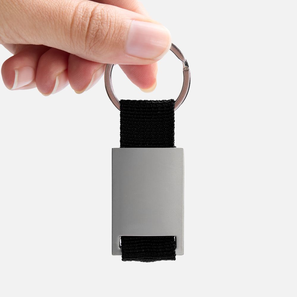 Минималистичный металлический брелок с тканевой вставкой.Поставляется в индивидуальной упаковке.