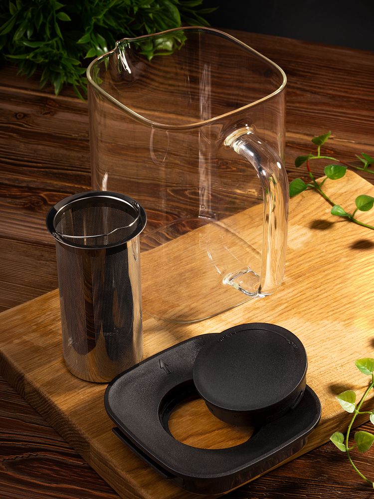 Благодаря прозрачному стеклу можно с наслаждением наблюдать за процессом заваривания, а эргономичная ручка делает процесс наполнения чашек легким и удобным. Встроенный металлический фильтр позволяет создать насыщенный напиток без лишних чаинок, которые впоследствии будет легко убрать одним движением.