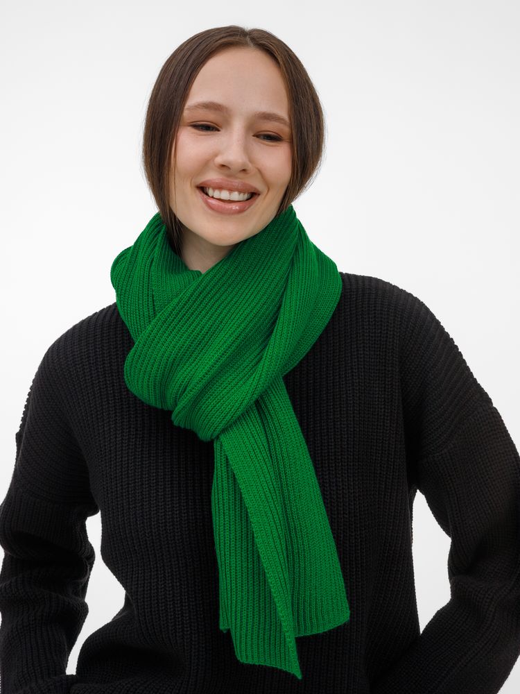 Широкий шарф из мягкой полушерстяной пряжи с выразительной фактурной вязкой создает современный запоминающийся образ. Однослойный шарф рельефной вязки. Поставляется в пакете с липким краем.