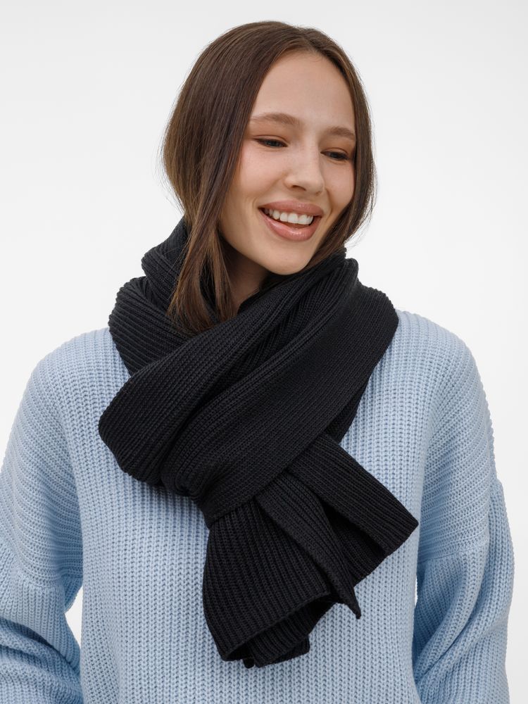 Широкий шарф из мягкой полушерстяной пряжи с выразительной фактурной вязкой создает современный запоминающийся образ. Однослойный шарф рельефной вязки. Поставляется в пакете с липким краем.