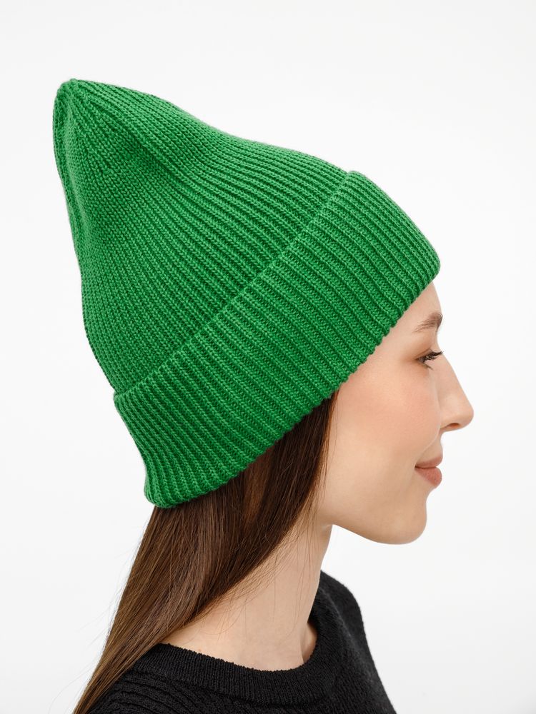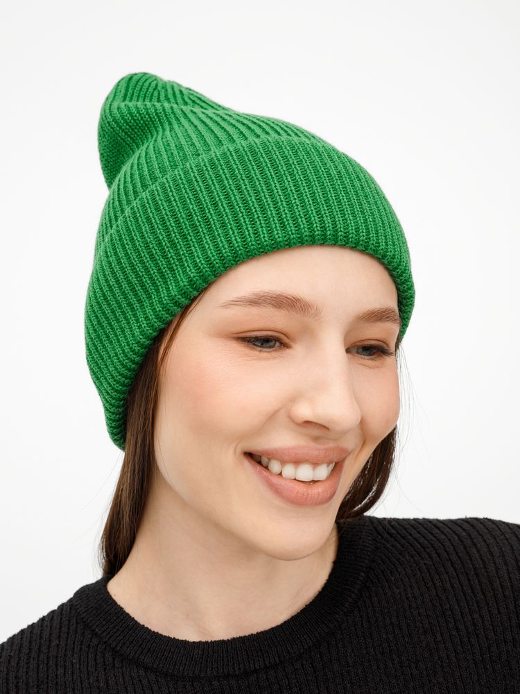 Удлиненный силуэт шапки Nobilis Mono из мягкой полушерстяной пряжи с широким отворотом создает стильный современный образ, а фактурная вязка добавляет объем и выразительность.