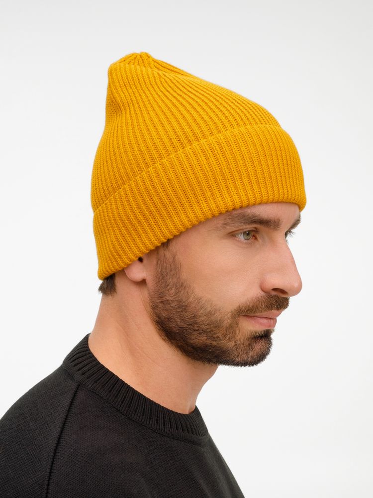 Удлиненный силуэт шапки Nobilis Mono из мягкой полушерстяной пряжи с широким отворотом создает стильный современный образ, а фактурная вязка добавляет объем и выразительность.