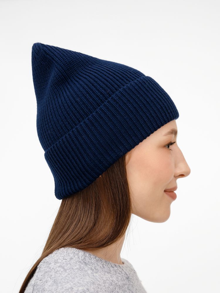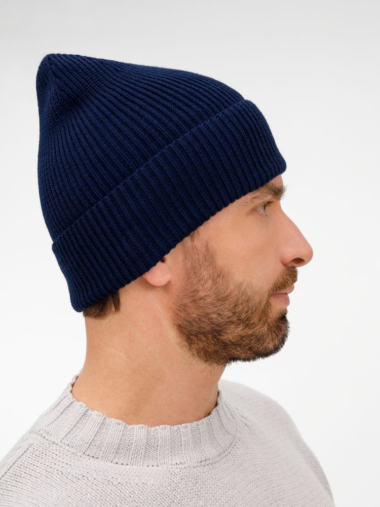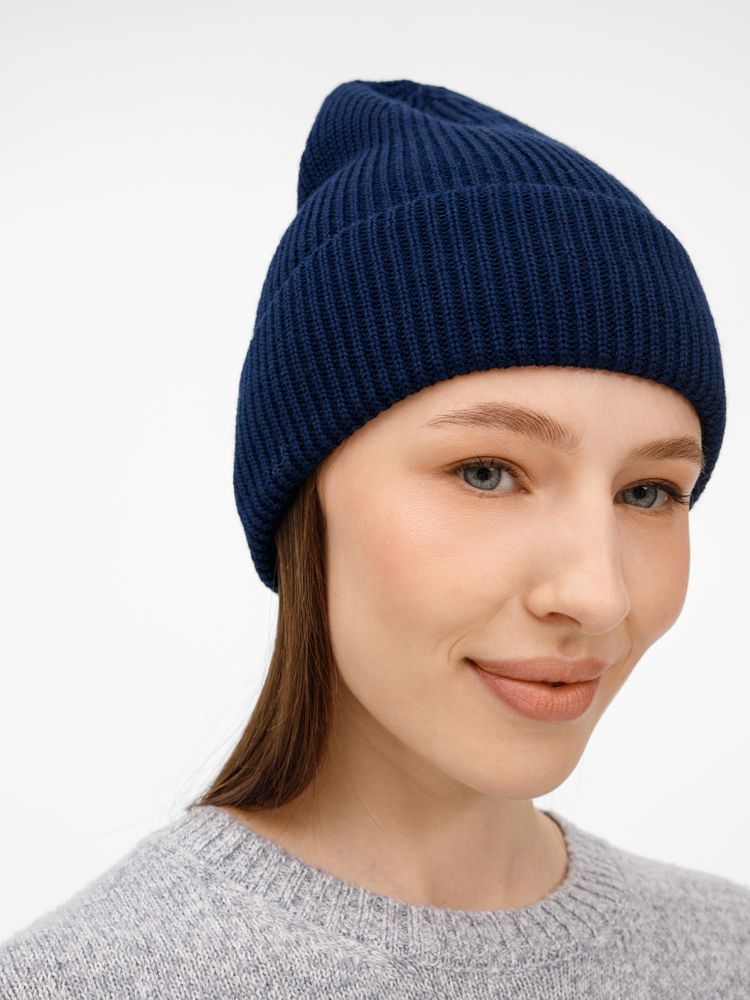 Удлиненный силуэт шапки Nobilis Mono из мягкой полушерстяной пряжи с широким отворотом создает стильный современный образ, а фактурная вязка добавляет объем и выразительность.