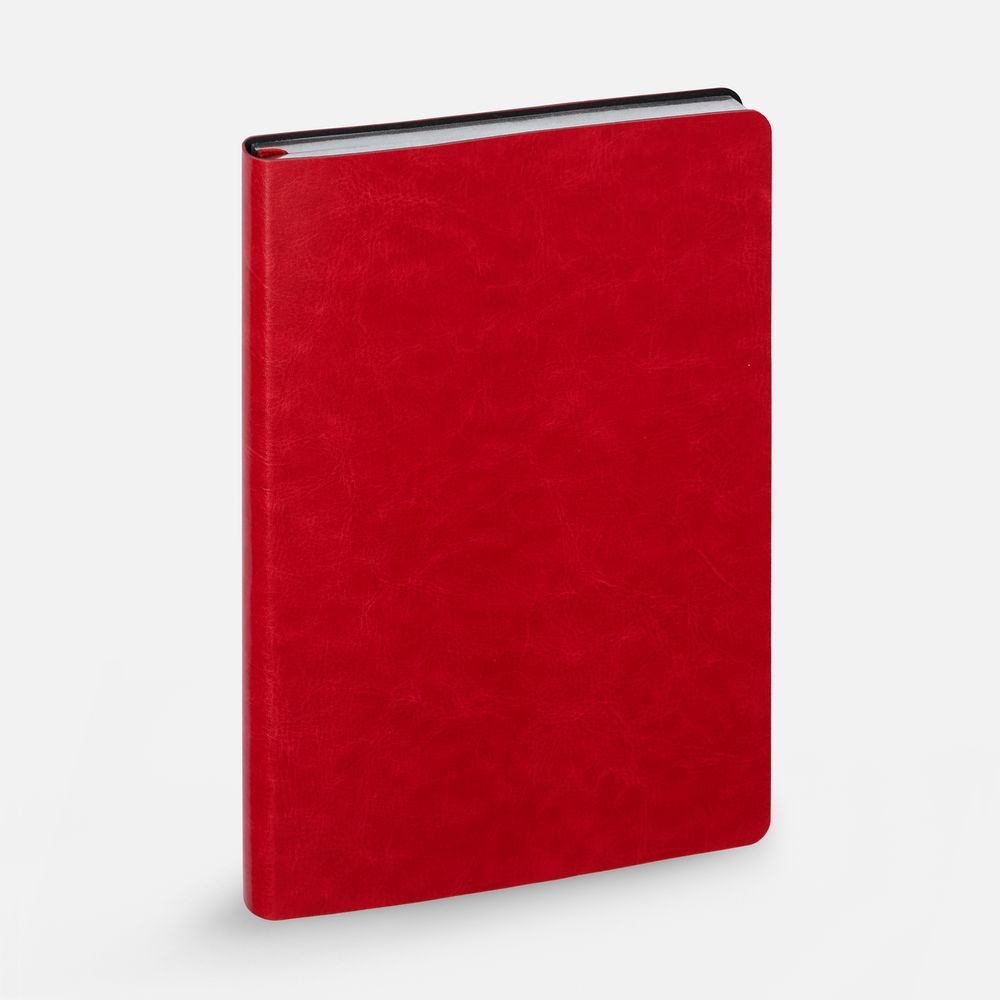 Модная интерпретация статусного ежедневника — с металлизированным обрезом и гибкой обложкой. Ежедневник с гибкой обложкой, выполнен из материала Nebraska, красный PP, дополнен ляссе красного цвета.