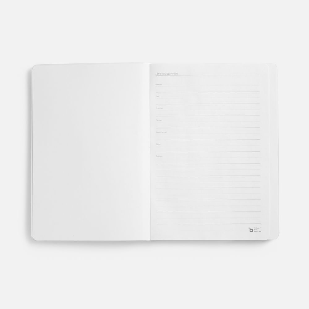 Ежедневник с гибкой обложкой, выполнен из материала Prestige, белый BB, дополнен ляссе в цвет обложки с металлическим шильдом.