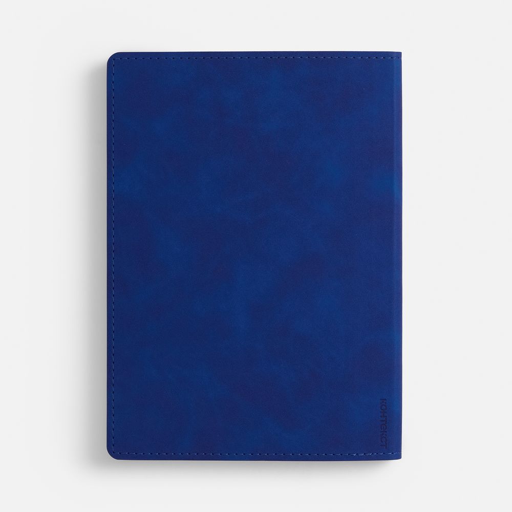 Ежедневник в клетку, с гибкой обложкой, выполнен из материала Nubuck Touch, синий НН, дополнен ляссе синего цвета.