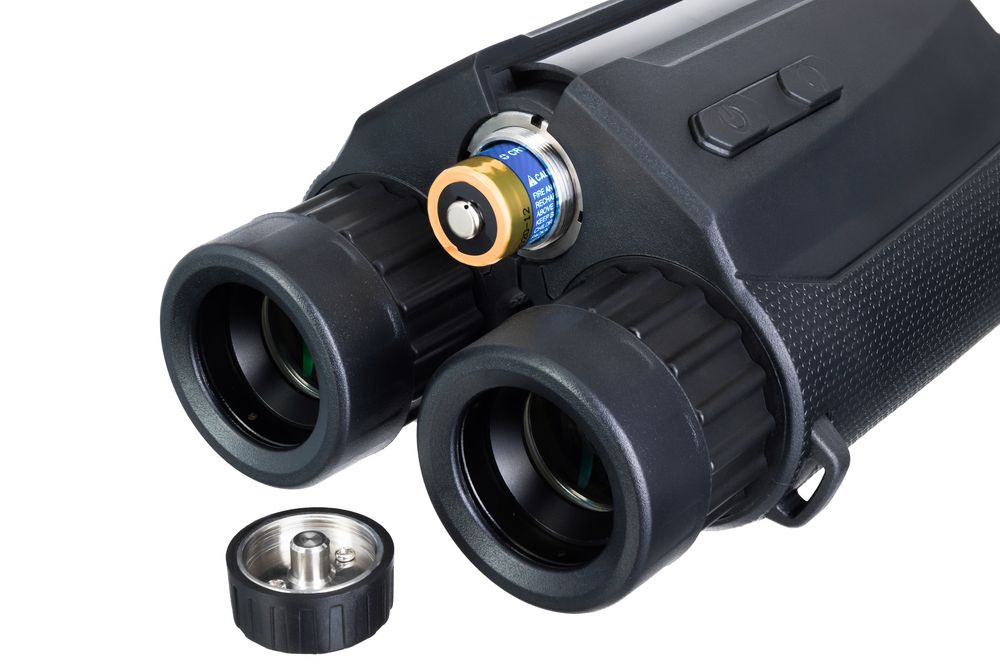 Бинокль легко адаптировать под любого пользователя. Настройка фокуса выполняется для каждого окуляра отдельно, а наглазники окуляров имеют поворотно-выдвижную конструкцию. Расстояние между зрачками регулируется.Бинокль с лазерным дальномером.