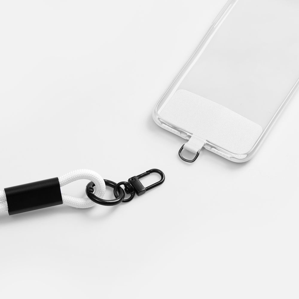 Важно: Для крепления телефона на ланьярд телефон должен иметь чехол. Если ланьярд распускается под тяжестью смартфона, убедитесь, что среднее из трех колец фурнитуры находится по центру ланьярда (на шее под затылком), а не сбоку. Соседние ветви оплетки должны идти вместе, без зазоров, так достигается трение ткани о ткань. Слишком тяжелые смартфоны (диагональ 6,9" и более) могут распускать ланьярд при энергичных движениях.