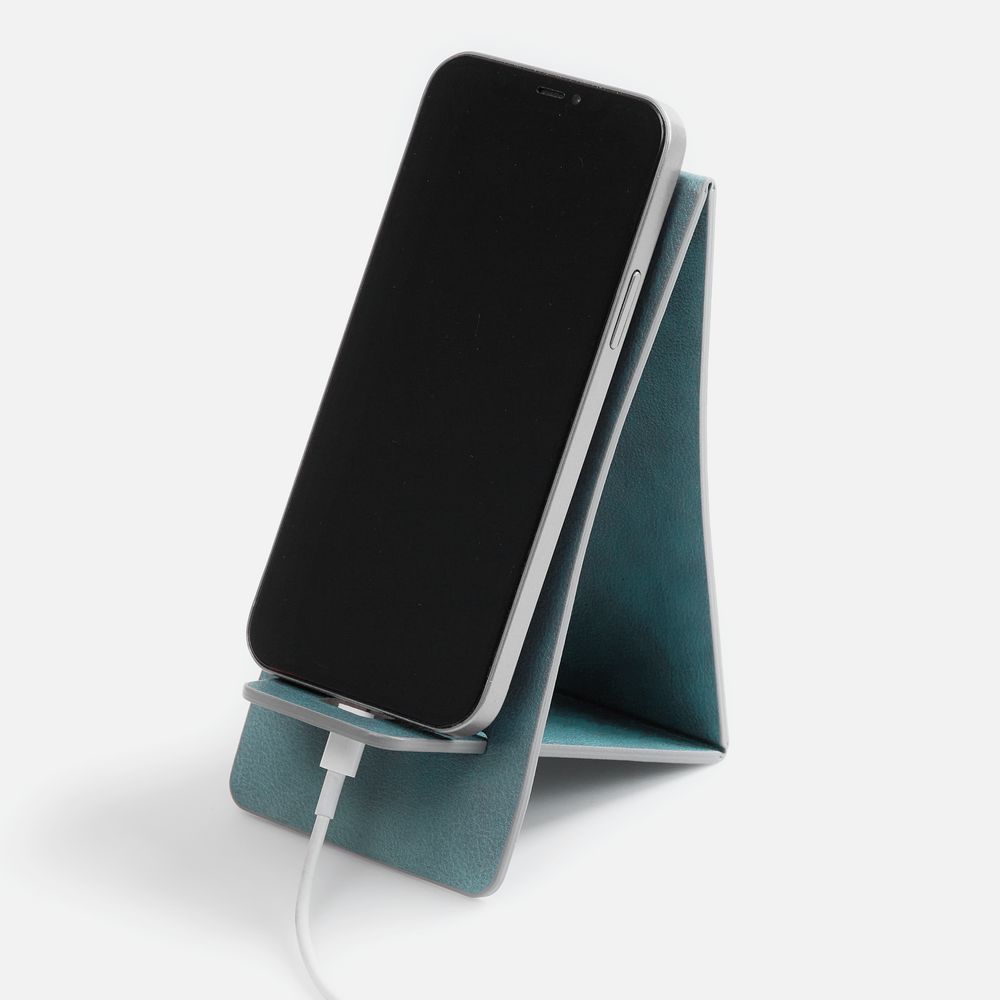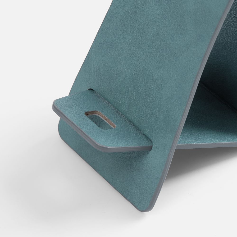 Складная подставка для телефона с вырубкой под шнур зарядного устройства. Выполнена из материала Petrus. Компактный размер и складная конструкция подставки позволят брать ее с собой в командировки, на встречи или использовать дома.