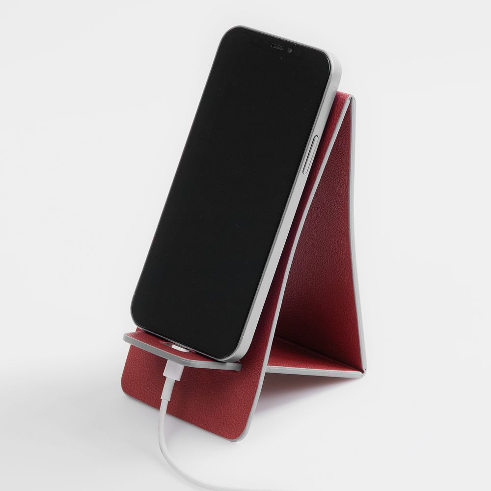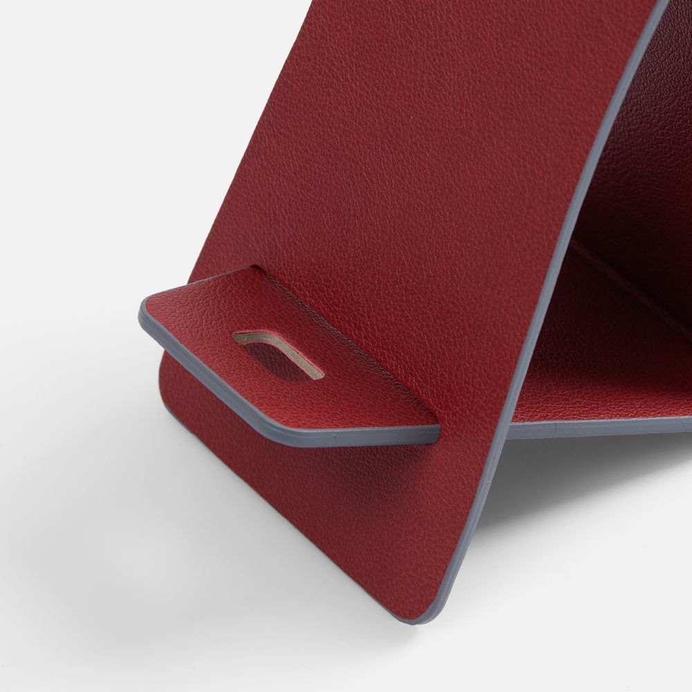 Складная подставка для телефона с вырубкой под шнур зарядного устройства. Выполнена из материала Petrus. Компактный размер и складная конструкция подставки позволят брать ее с собой в командировки, на встречи или использовать дома.