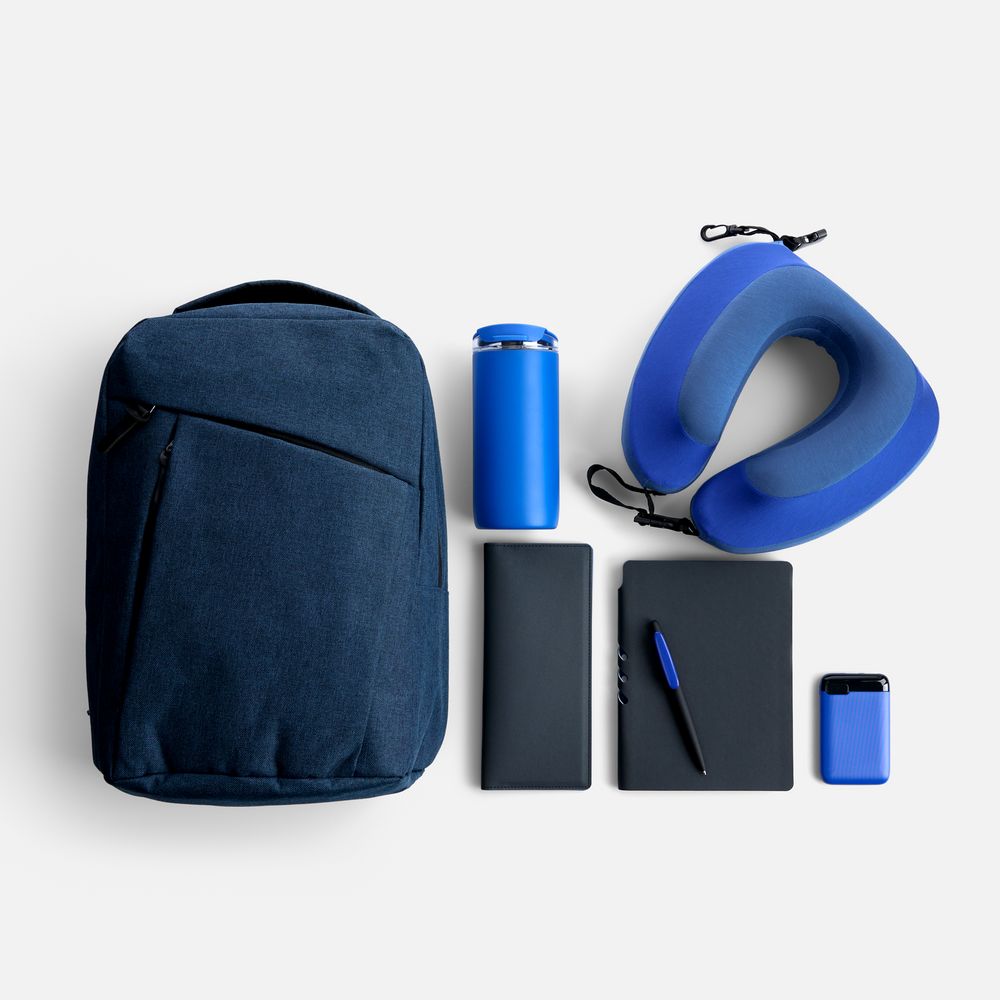 Вместительный рюкзак позволяет с легкостью захватить с собой все необходимое в дорогу. Подушка для путешествий гарантирует максимальный комфорт и поддержку шеи во время долгой поездки или перелета, а с дорожным органайзером все важные документы будут в исключительном порядке. Термостакан позволит утолить жажду или согреться, а аккумулятор обеспечит бесперебойную работу всех устройств. Войти в рабочее русло и спланировать все дела даже на ходу позволят ежедневник и ручка, которые всегда будут под рукой.