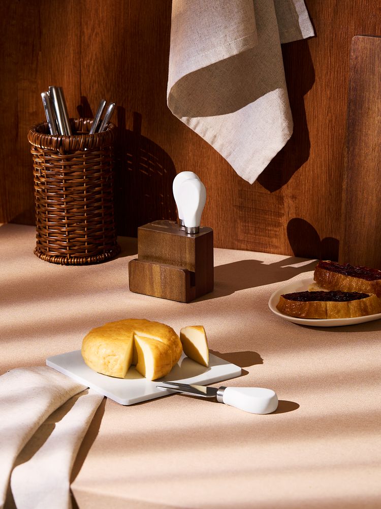 Marmara — компактный сырный набор с мраморной доской и ножами на деревянной подставке.