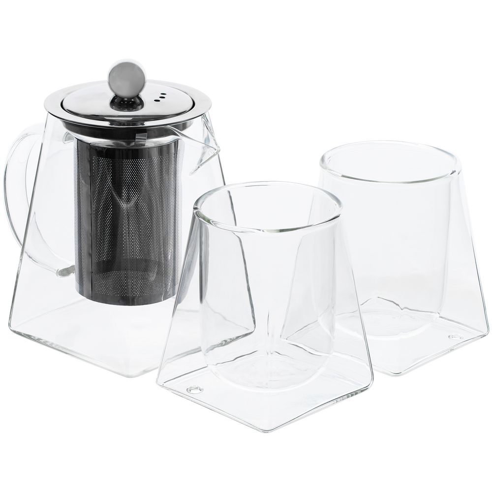 • Материал: чайник, стаканы - боросиликатное стекло; крышка и сито - нержавеющая сталь; коробка - переплетный картон