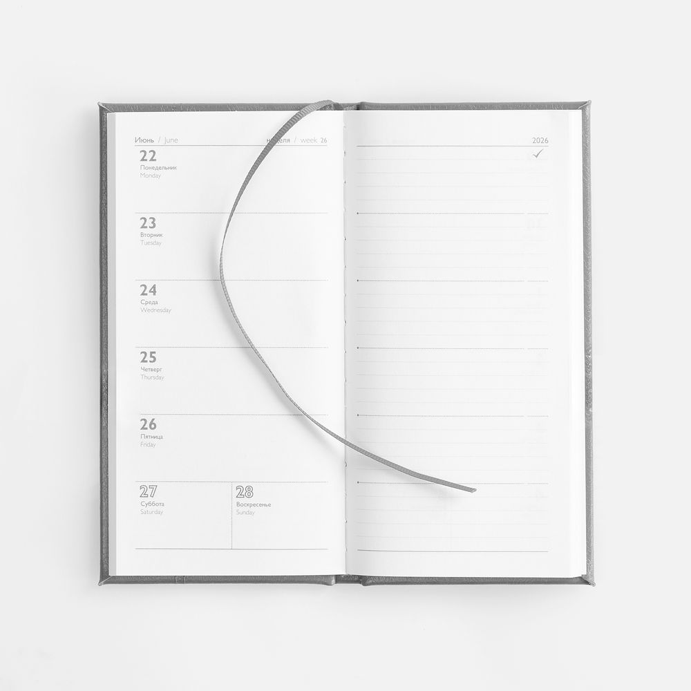 Еженедельник с твердой обложкой с поролоном из искусственной кожи, дополнен декоративной строчкой, капталом и ляссе в цвет.