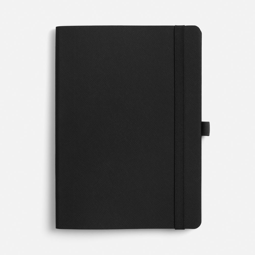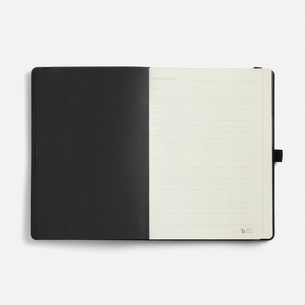 Ежедневник с гибкой обложкой, выполнен из материала Nice Touch, черный АА, дополнен цветными ляссе и петлей-резинкой для ручки.