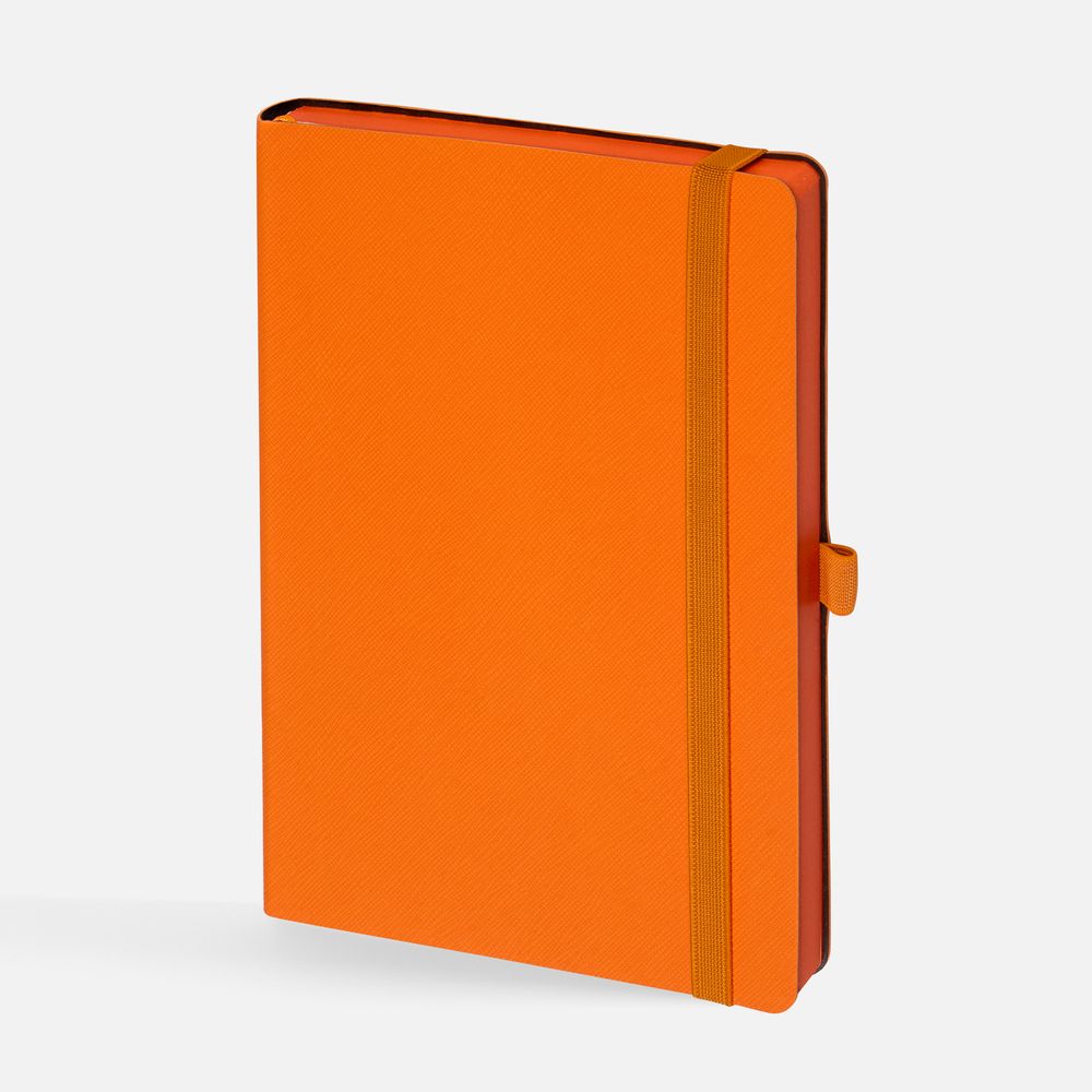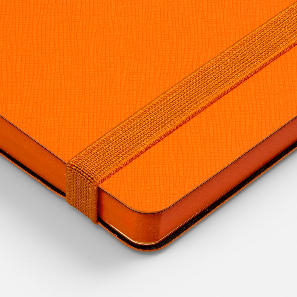 Ежедневник с гибкой обложкой, выполнен из материала Nice Touch, оранжевый ОО, дополнен цветными ляссе и петлей-резинкой для ручки.