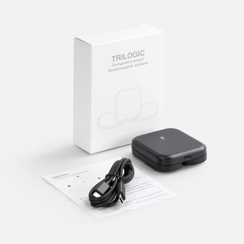 Trilogic — компактное устройство беспроводной зарядки для самых мобильных и современных пользователей. Площадки для зарядки наушников и часов легко складываются и не занимают много места, когда не используются: станцию удобно использовать не только в офисе, но и при разъездах.