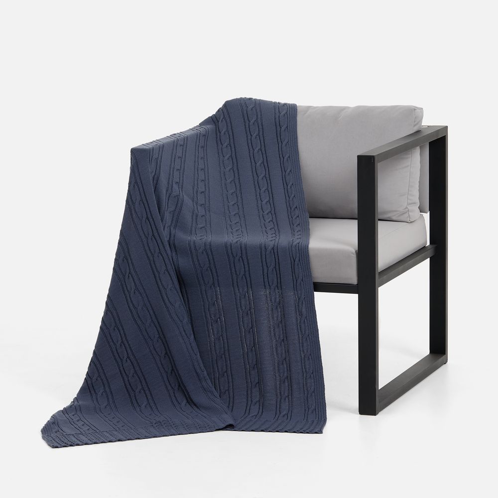 Тонкое переплетение вертикальных кос-жгутов создает благородный стиль, где простота линий встречается с изысканной рельефной текстурой. Плед из мягкого акрила сохраняет тепло, оставаясь удивительно легким и воздушным.