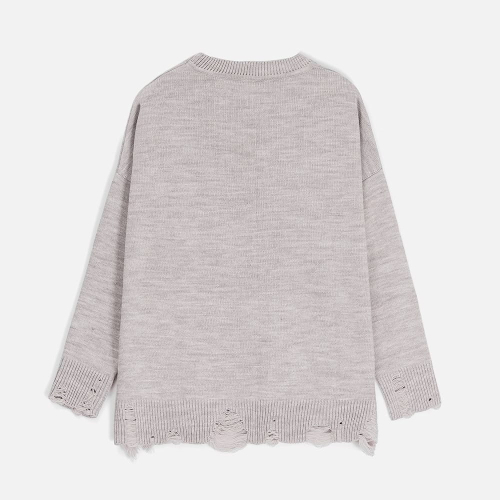 В дизайне мягкого джемпера с круглым вырезом Sharpick гранж-эстетика органично сочетается с милым акцентом — пушистым рисунком в виде озорного котика. Получается веселая вариация на тему того, откуда берется модная рваная одежда, а джемпер моментально создает настроение легкой несерьезности. Рваные края изделия добавляют современную нотку, а резинка на вороте, манжетах и по низу обеспечивает удобную посадку.