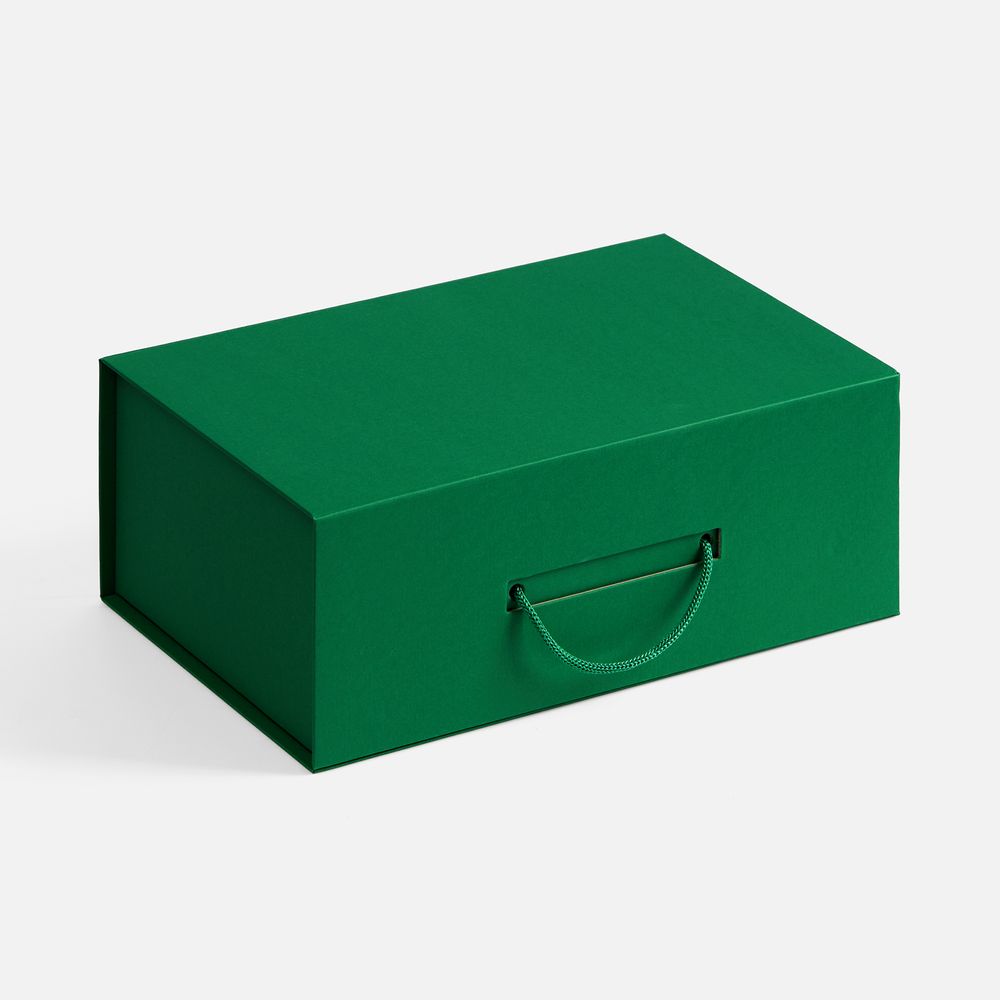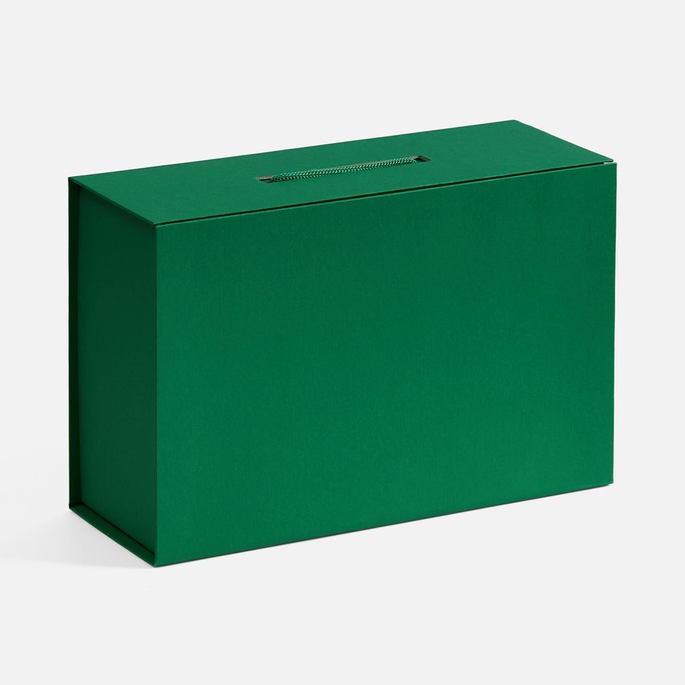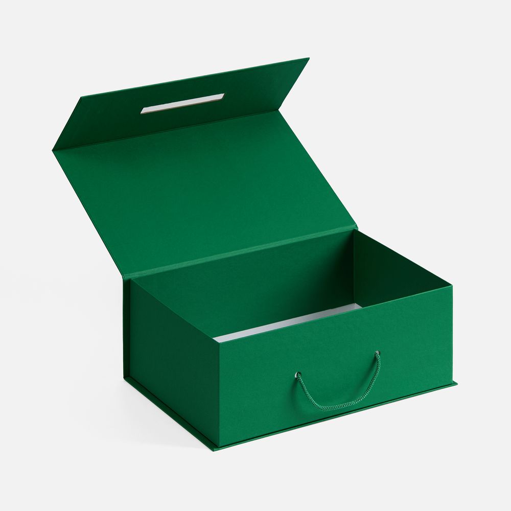 Коробка выполнена из переплетного картона, кашированного дизайнерской бумагой Malmero, с крышкой на магните.